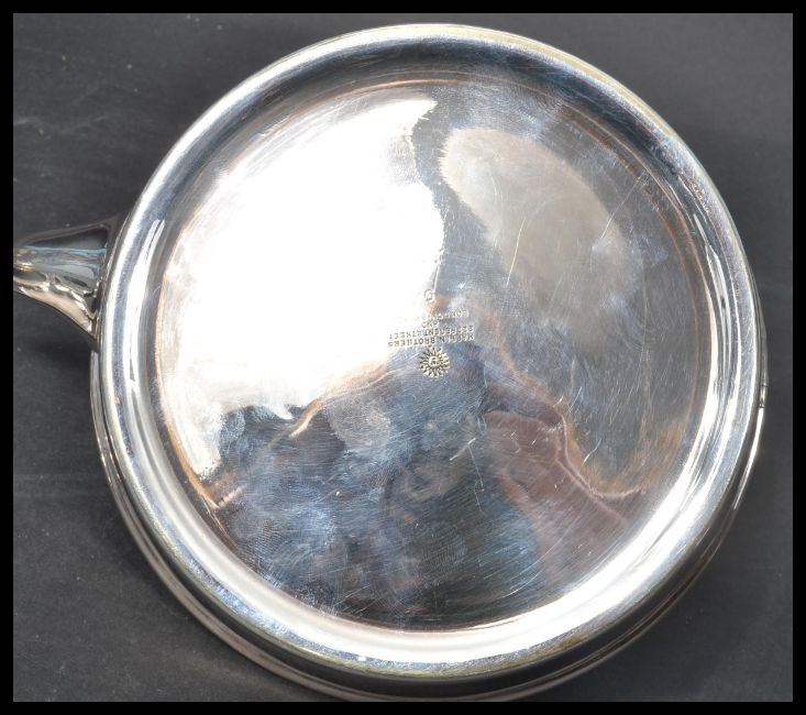 A Victorian Mappin Brothers silver plated spirit kettle picnic tea pot raised on cabroille legs turned ivory handle to top. Makers stamp to base. Mappin Brothers Regent Street. Measures 22 cm high.