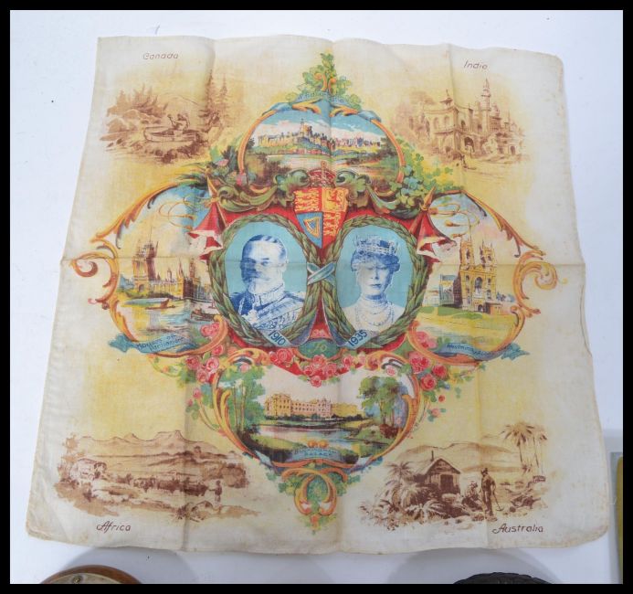 A collection of items to include a vintage 20th century Indian Balloon advertising point of sale ashtray, 1910 - 1935 silver Jubilee handkerchief and mirror, oak and ceramic salts etc