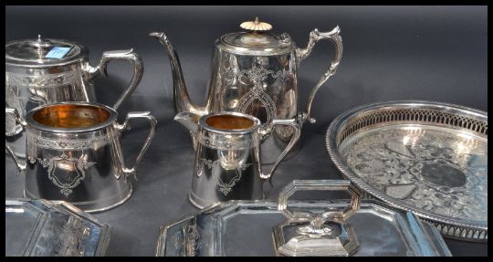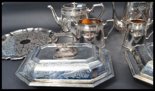 A collection of vintage early 20th Century silver plated items to include a tea service, lidded tureens, salvers etc. Highest measures 21 cm.