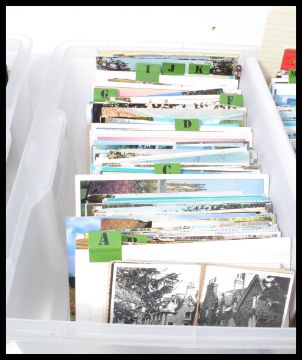 A large collection of well over 1000 plus vintage postcards to include various British , European and international examples. All organised within two plastic storage cases. Private collection please see images.