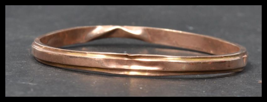 A 9ct gold Henry Griffith and Sons 9ct gold bangle along with a hallmarked 9ct gold fob medal/. Total weight 7.6 grams.