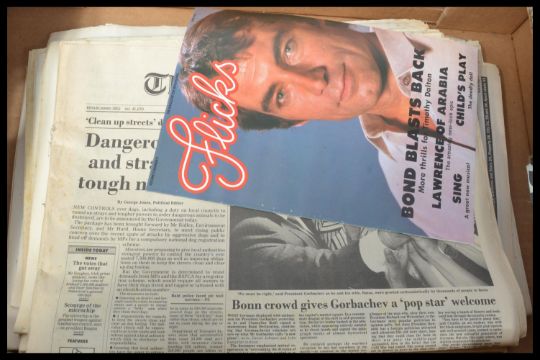 A collection of vintage 1980's 007 James Bond related newspapers & suppliment magazines by various publisher to include; The Sun, Sunday Mirror