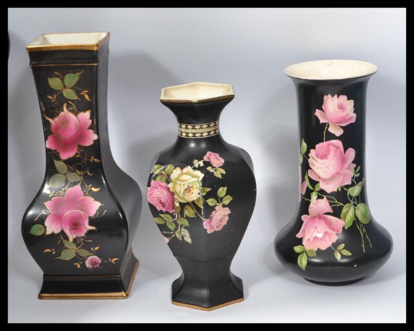 A large collection in Crown Ducal ceramics to include Washbowl and jug, large trophy shaped urn and stand, various vases including a pair etc. Measures 41 cm diameter and highest measures 34 cm.