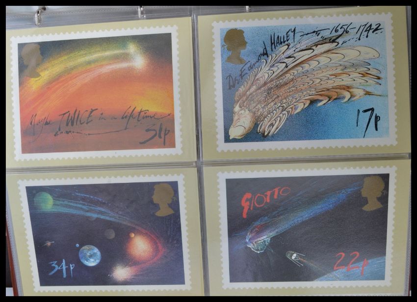 A large collection of approx 500 Royal Mail postcards , mostly postcards depicting stamps. Lots of albums please see images.