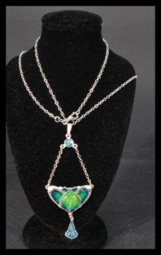 A sterling silver Art Nouveau style necklace pendant set with enamel complete in jewellery presentation box.
