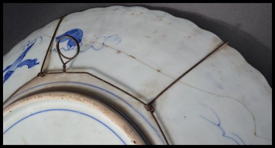A 19th century Chinese Imari pattern charger of large form having a scalloped edge with central panel depicting a still life scene. Measures 47 cm diameter.