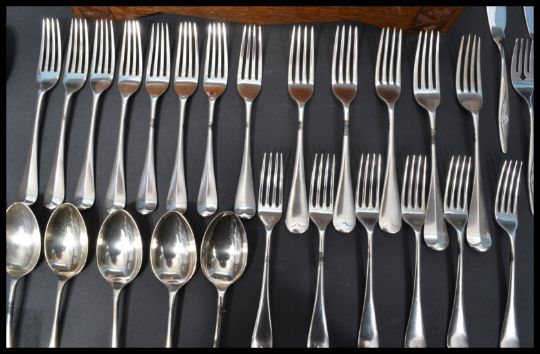 A vintage 20th century oak cased canteen of cutlery together with cased flatware to include a stunning set of silver plated Art Deco coffee bean spoons etc