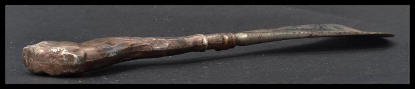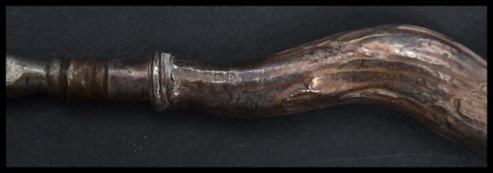An early 20th century silver hallmarked novelty shoehorn shoe horn by Crisford & Norris Ltd Birmingham 1914. The handle in the form of a dog. Measures 19 cm long.