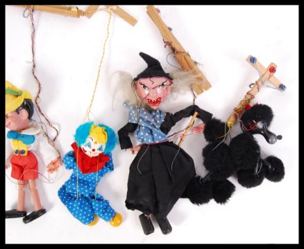 Four original vintage Pelham Puppets comprising of; Poodle, Clown, Witch & Pinocchio. All unboxed.