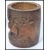 Two 19th century Chinese bamboo brush pots one decorated with men riding an ox and one decorated with trees and birds. Measures 16 cm high.