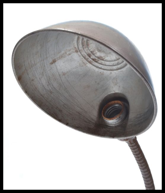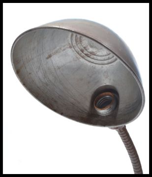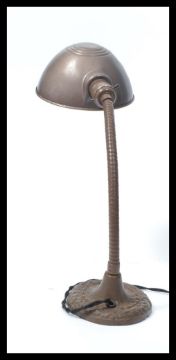 An early 20th century gooseneck anglepoise clam shell pendant desk lamp / light. Raised on cast iron base with adjustable gooseneck. Measures 41 cm high.
