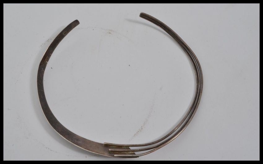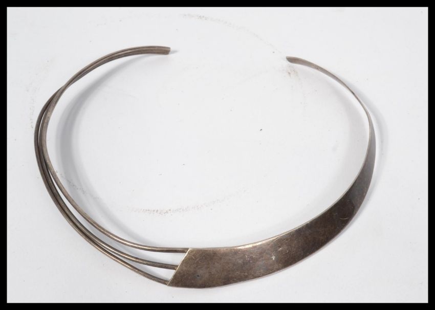 Three large sterling silver necklaces of Cleopatra style , one set with various semi precious stones , total weight 146 grams.