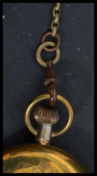 A vintage 20th century gold plated Superior Aeroplane Timekeeper, the back engraved with a monoplane, on graduated link Albert chain.