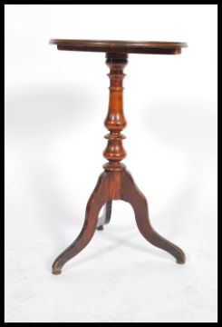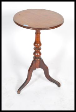 A 19th century early Victorian solid mahogany wine / lamp table raised on tripod base with circular top above. 75x45 diameter