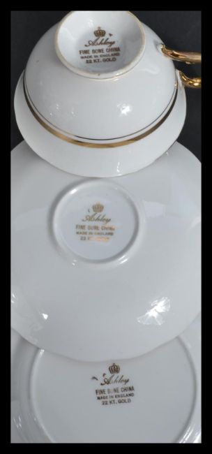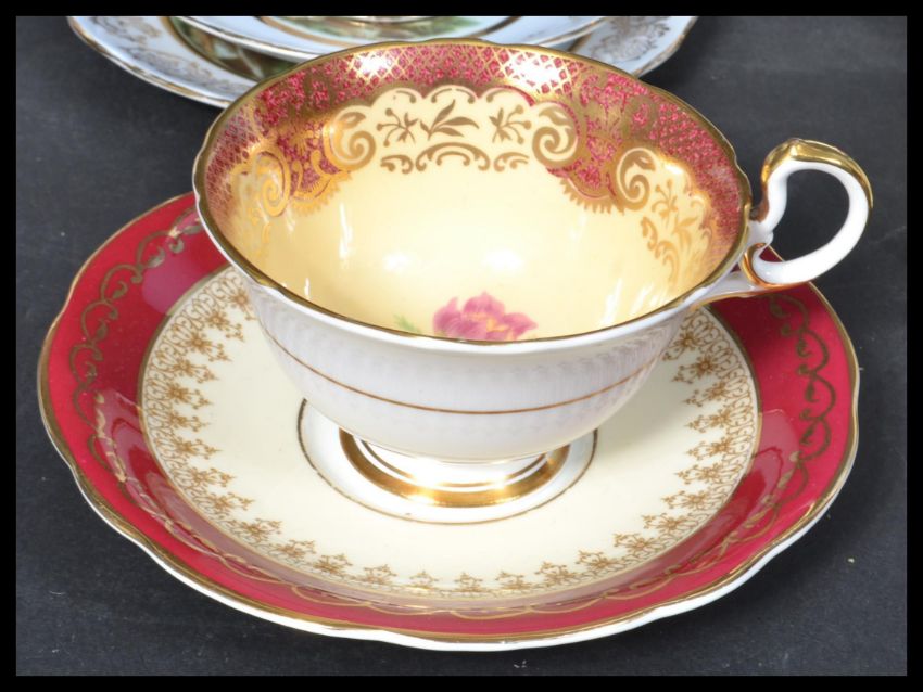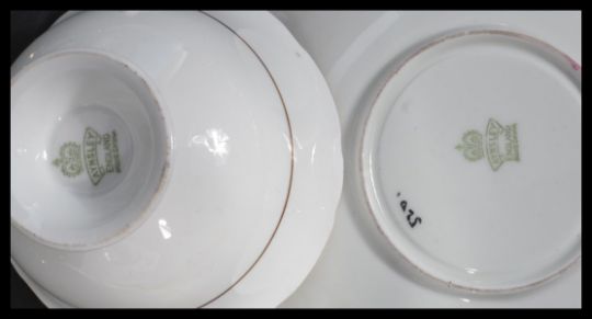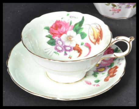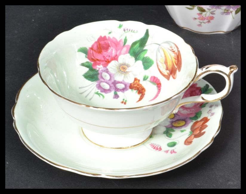 A group of English bone china cabinet ceramics to include Anysley , Paragon , Crown Derby. Cups and saucers teapot , etc. Please see images.
