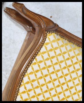 An early 20th century French corbeille bed with chenille upholstered head and footboard united by shaped rails