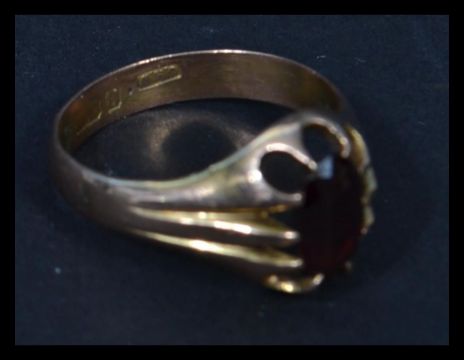 A 20th century  9ct gold hallmarked ladies single stone ring. Central claw mounted oval stone. Total weight 4.8g / maker JWW.