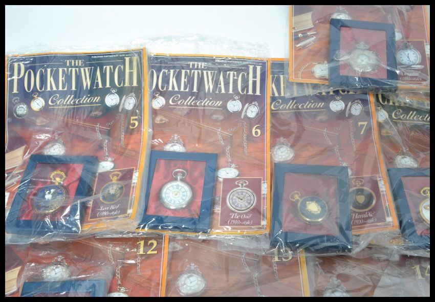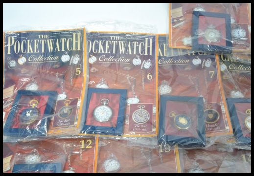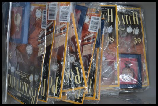 A large collection of approx 81x issues of ' The Pocket Watch Collection ' largely all sealed, with the correct corresponding magazines. All watches appear to be in their original boxes.