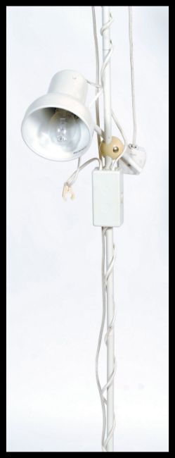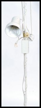 A retro 20th Century floor standing adjustable double spot lamp / light raised on a circular base in original white colourway.