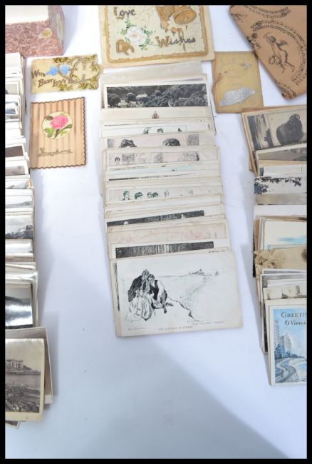 A collection of vintage postcards dating from the early 20th century together with a small quantity of cigarette / tea cards.