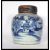 An 18th century Chinese blue and white porcelain ginger jar decorated with buildings and landscapes with pierced wooden lid. Measures 21 cm high.