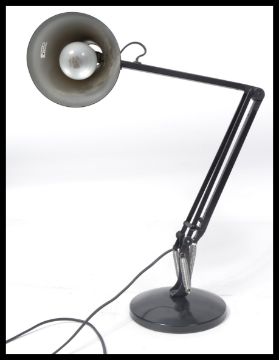 A 20th century vintage Anglepoise desk lamp in the manner of Herbert Terry. Black colourway with terraced base and pendant shade. Measures: 60cm high.