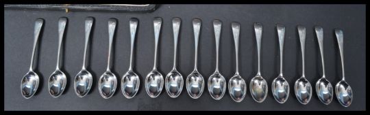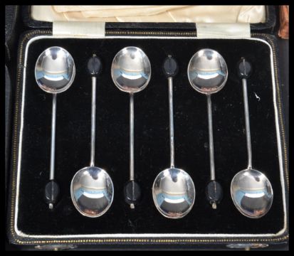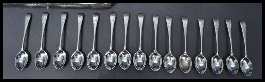 A collection of vintage 20th Century cased flatware to include a set of silver hallmarked coffee bean spoons, dessert cutlery, fruit knives, 15 loose Dorchester Hotel tea spoons etc.