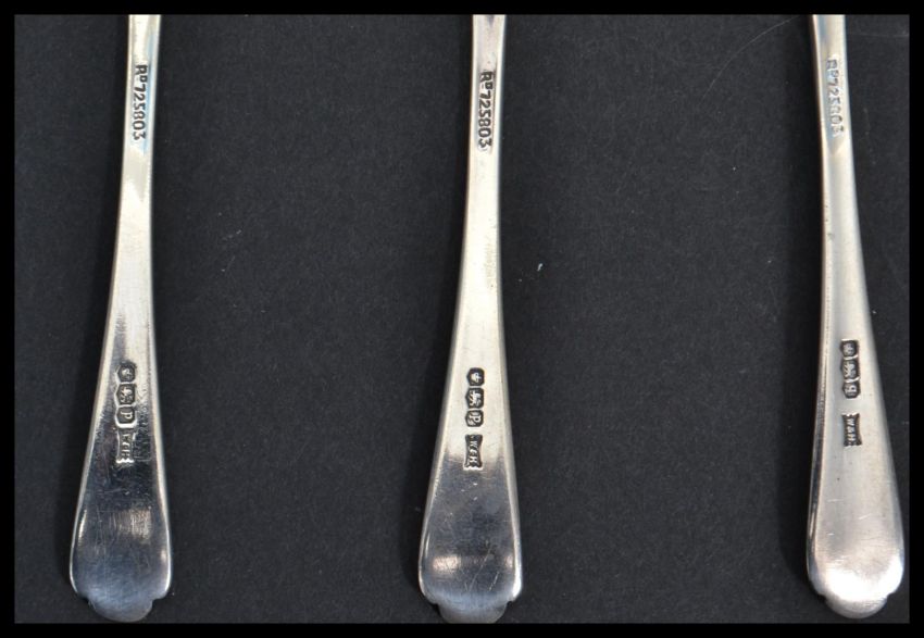 A set of six silver hallmarked Walker and Hall tea spoons having golfing interest terminal handles with crossed golf clubs and ball. Hallmarked for Sheffield 1932. Weighs approx 75 grams. Measures 11.5 cm long.