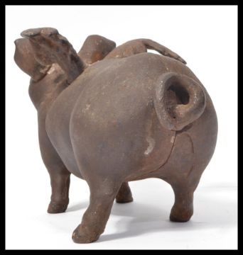 A vintage 20th Century cast metal pig ( Pigs might fly ) with wings money box, wings outstretched with slot to the top.