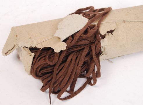 Two rare original WWII era Nazi German Third Reich SS Schutzstaffel issued spare uniform items comprising of; 500 meter cotton reel for repairing uniforms & a pack of shoe laces. ' RZM SS ' mark present to cotton pack. Extremely rare.