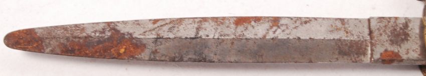 A late 19th / early 20th century bone handled patterned blade Spanish dagger. Crown to top of the handle. Markings worn, but ' Artil Fabrica' appears to recasse. 29cm long