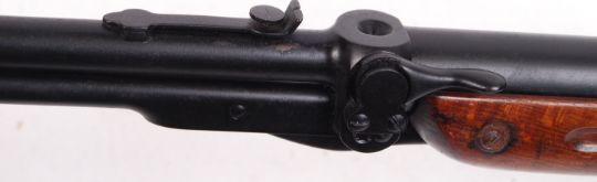 A good vintage Haenel ' Model V ' Junior .177 under lever air rifle. Adjustable sight to top, with makers mark to top of barrel. Full working order. Measures approx; 99cm long.
