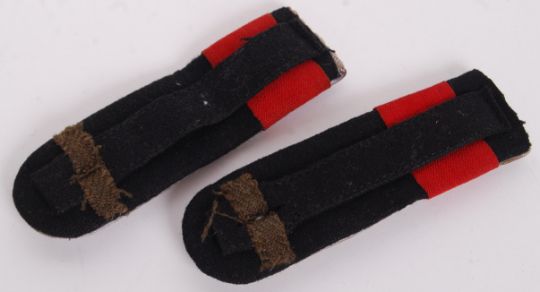 A pair of rare WWII Second World War Third Reich Nazi German Pioneer of Infantry Officer's uniform epaulettes. Silver thread, with silver edging and red banding. Rare.
