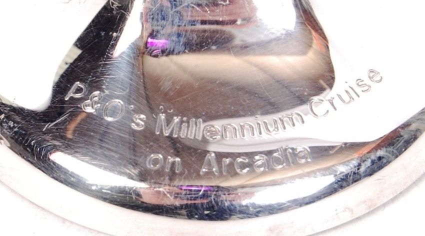 A English silver hallmarked P&O commemorative ' Millennium Cruise on Arcadia ' bud vase. Marks for Carrs of Sheffield, 2000 present. Measures 20cm high. Weighs approx 97 grams.