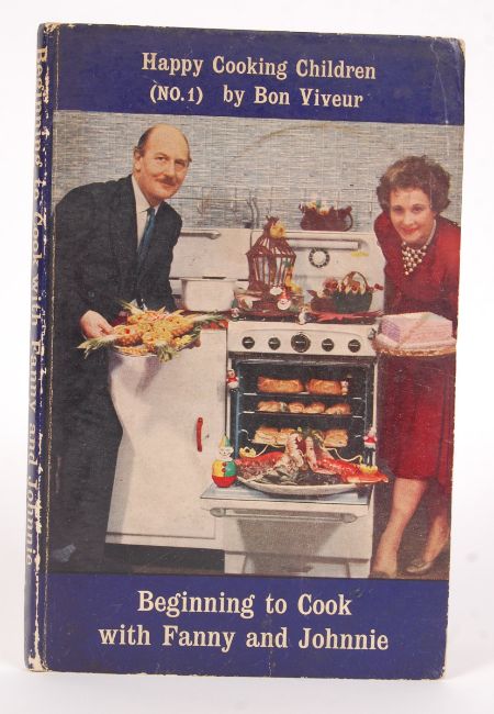 ' Happy Cooking Children No.1 - Beginning To Cook With Fanny & Johnnie ' First edition 1959, hardcover. Autographed to the title page by Fanny & Johnnie Craddock in green pen. Rare.