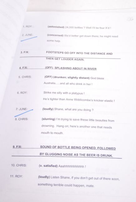 A rare ' The News Huddlines ' BBC radio comedy script for series 50, ep. 1. Signed to the front by the entire cast - Roy Hudd, June Whitfield and Chris Emmett. All signed in pen to the front cover. The script, appearing to have belonged to June Whitfield, is filled with annotations and amendments in her hand. Rare.