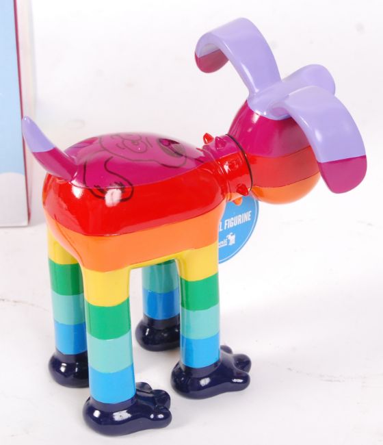 A rare original ' Gromit Unleashed ' scale ceramic figurine of Gromit from Wallace & Gromit (by Aardman Animations ) signed by creator Nick Park. The figure - ' Roger ' - was designed by animator Richard Williams, and displayed in Bristol during the Gromit Unleashed Trail. Signed in black marker by Nick Park who has added a sketch of Gromit to the back. Mint, within the original box, with all inner packing present.  Obtained from a charity auction by the vendor, the figurine also comes with a letter of authenticity from Aardman Animations.