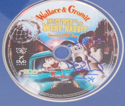 A Wallace & Gromit DVD Game ' Curse Of The Were-Rabbit ' framed presentation display. The disc itself being signed by Aardman creator Peter Lord (also famous for creating Morph ). Signed in blue ink. Nicely framed. Total size: 53cm x 43cm.