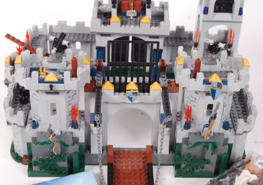 A Lego Knight's series set No. 7094 ' King's Siege Castle ' set. Vendor assures us set is 100% complete (missing the dragon), supplied with extra minifigures (contents are unchecked by us). Appears fully made, with figures bagged. Great set.