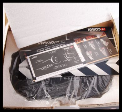 An assorted collection of Corgi James bond diecast items to include; TY95901 2 Pieces Set with figures, CC99105 BMW Z8 & Diorama & 2x TY99132 Aston Martin & Jaguar XKR 2-piece sets. All within their original boxes/ plastic cases.