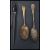 A  bronze twin handled pestle and mortar along with a group of silver plated flatware to include gemstone topped spoons , caddy spoons , berry spoons etc. Please see images. Mortar measures 10 cm high and the pestle measures 18 cm long.