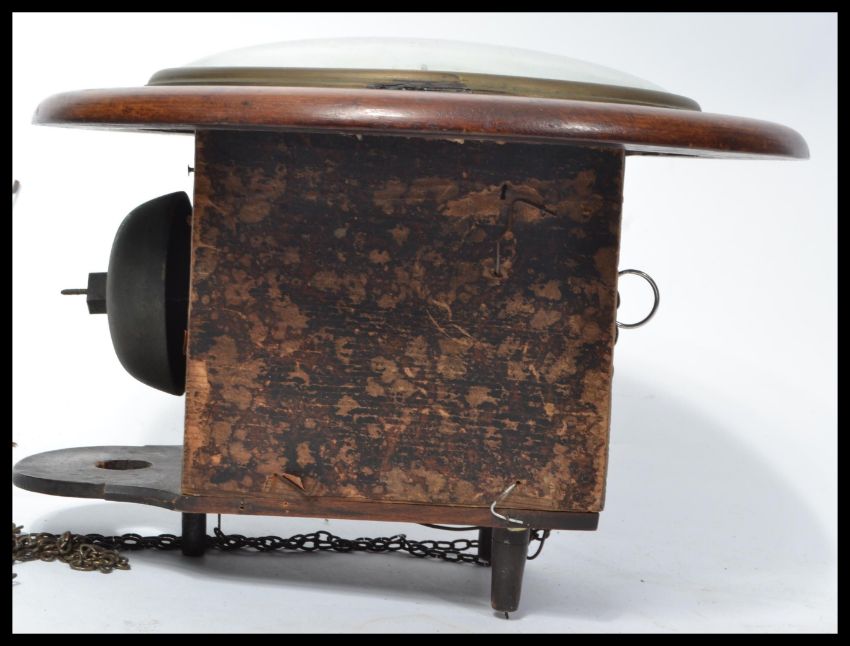 A 19th century Victorian station post office wall clock by L Wangler and Co of Oxford. The white enamel face having Roman numeral chapter ring and faceted hands. Signed to dial. 32 diameter