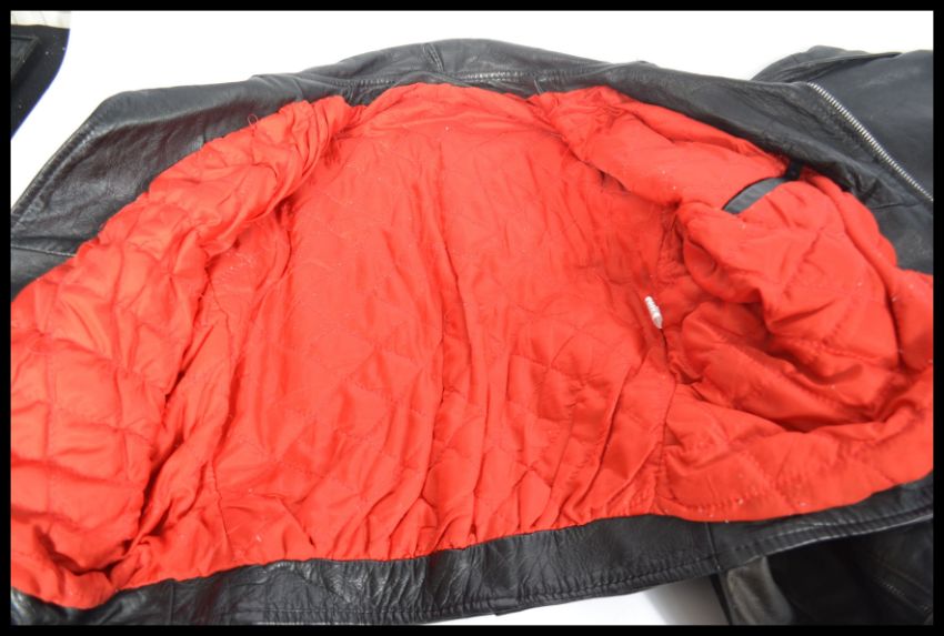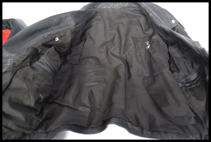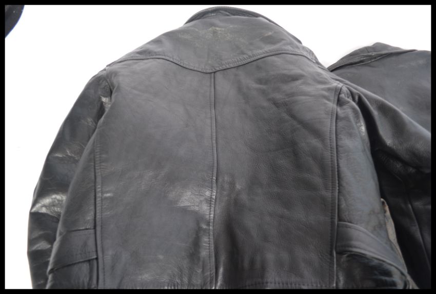 Two vintage 20th Century leather bikers / rockers motorcycle jackets, zippers and buttons to the front
