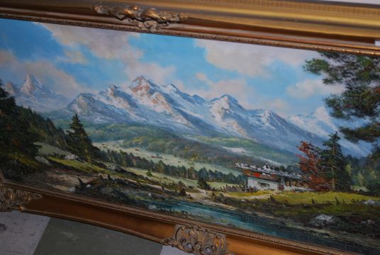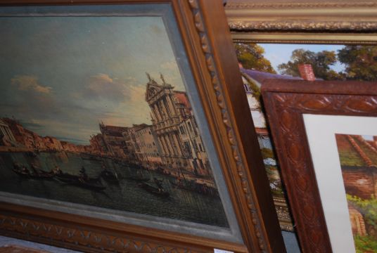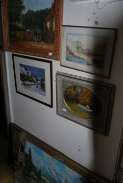 A collection of various oil paintings of landscapes and scenic views all in ornate gilt frames. Please see images.