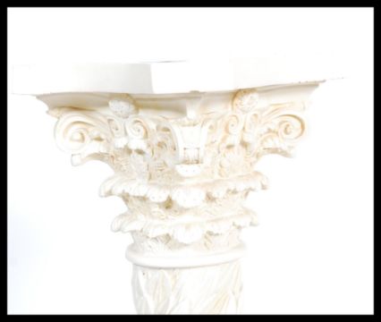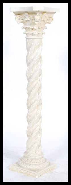 A 20th century unusual resin cast plant stand torchere. The plinth base and top united with an unusual gothic twist column