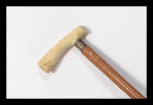 A vintage early 20th century Edwardian Ivory handled walking cane having a Malacca shaft with a silver hallmarked collar with rubbed marks. Measures 85 cm long.