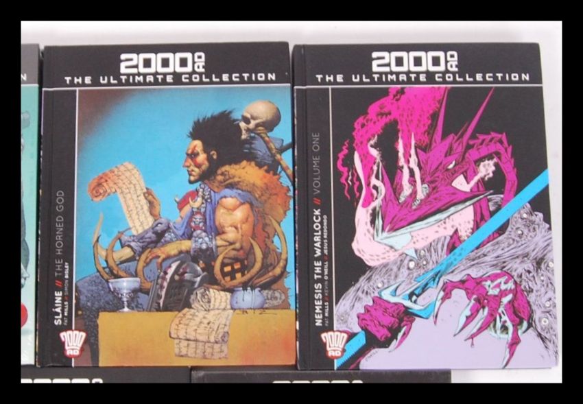 A collection of 7x 2000AD The Ultimate Collection graphic novel books to include issues; Robo- Hunter volume one issue 11, The Ballard of Halo Jones, Nemesis The Warlock Volumes one & two, Slaine The Horned God & Nikolai Dante volumes one & two. All appear mint, with some factory sealed.