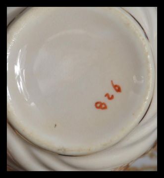 An early 20th Century Edwardian bone China transfer printed part tea service consisting of trio's, slop bowl. Marked to base for Paragon together with a ribbon edged Continental ceramic tazza having hand painted detail. Measures 13 cm high and 24.5 cm diameter.