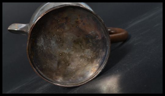 An 18th century Georgian silver plated Argyle raised on a circular foot with beaded border. Shaped wooden handle with bell shaped finial. Measures: 20cm high.