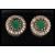 A pair of sterling silver and CZ earrings of roundel form having central green stones. Complete in jewellery presentation box.